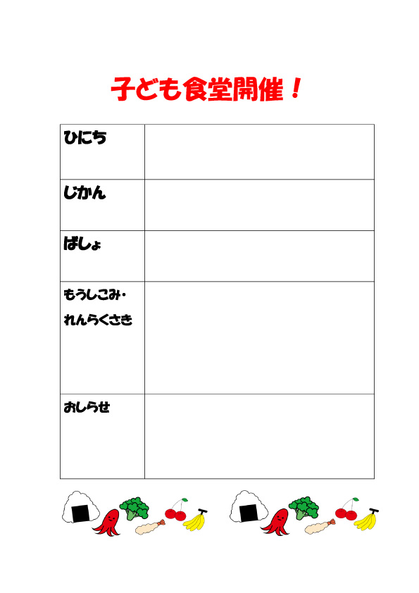 子ども食堂で簡単に使えるチラシのテンプレートを掲載しています。